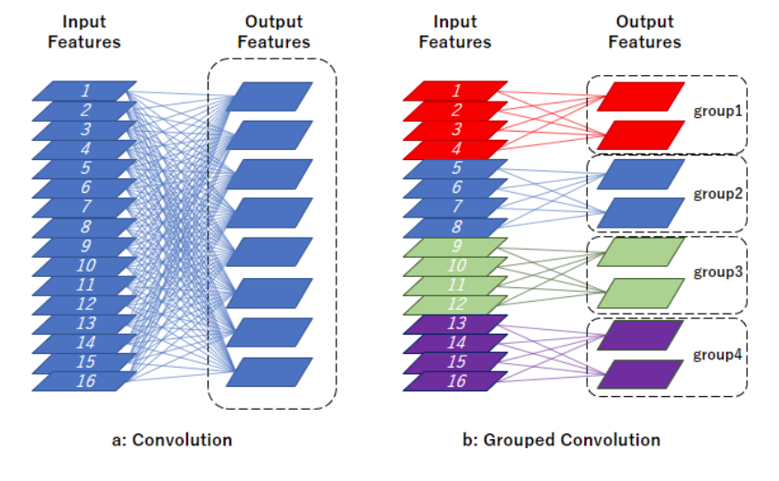 ResNext utilized group convolution in the 3x3 conv layer of bottleneck blocks. What is group convolution?