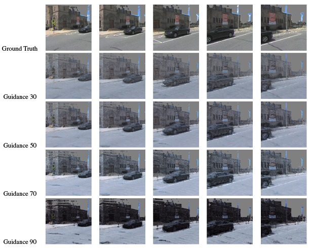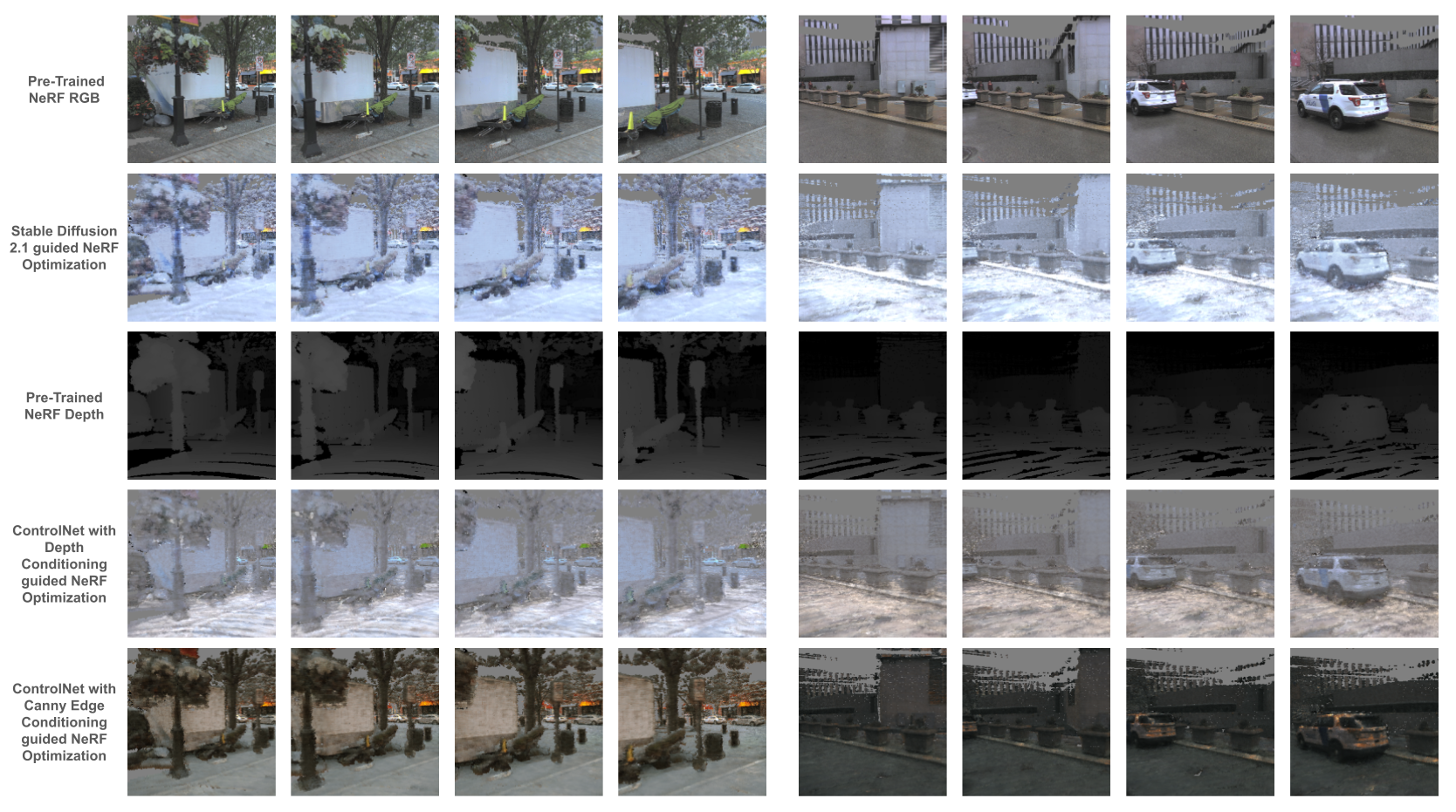 We explore the application of Neural Radiance Fields to generate novel street views, similar to the likes of Google Street View but without the need for special data acquisition and curation by leveraging the vast and open-source self-driving datasets like Argoverse2. To address the challenges posed by sparse camera views and biased straight line trajectories of the viewpoints in these datasets we use LiDAR maps as depths priors to help the NeRF model converge faster while also learning point embeddings for each location of the LiDAR point cloud. Furthermore, we propose diffusion guided optimization to modify these embeddings allowing us to render custom textures in the scene from user-defined prompts while maintaining geometric consistency across views. We test our approach on the Argoverse2 dataset and provide a qualitative as well as a quantitative comparison of the rendered scene against the ground truth images